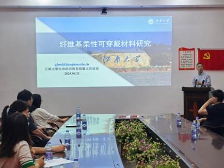 (通讯员:汪杨)为促进学术交流,拓展师生科研视野,2025年6月21日上午,化学与材料工程学院特邀中国农业科学院麻类研究所谭志坚研究员和江南大学纺织科学与工程学院魏取福教授来我校红楼二会议室作专题学术报告。两位专家分别围绕生物降解材料与纤维基柔性电子领域的最新研究进展进行了精彩分享,学院部分博士、教授及学生参加了此次报告会。会议由副院长刘少恒主持。