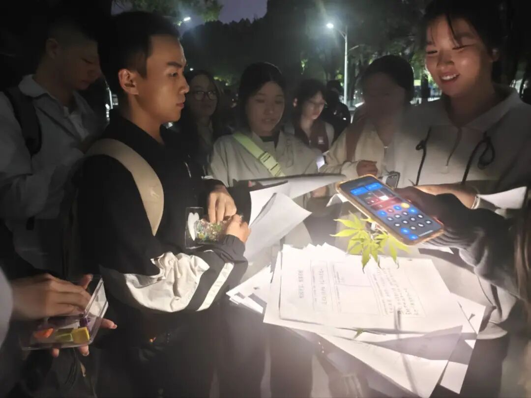 活动于当晚19:00准时开始。全体参与学生在化工楼门口集合,以一张集体合影拉开了寻宝之旅的序幕。随后,心理部干事有序分发内容详尽的寻宝清单,清单上清晰标注了需在校园各处寻找的特色物品。同学们迅速投入探索状态,穿梭于校园各个角落,以崭新的视角观察熟悉的环境,积极寻找能够触动心灵的“宝藏”。