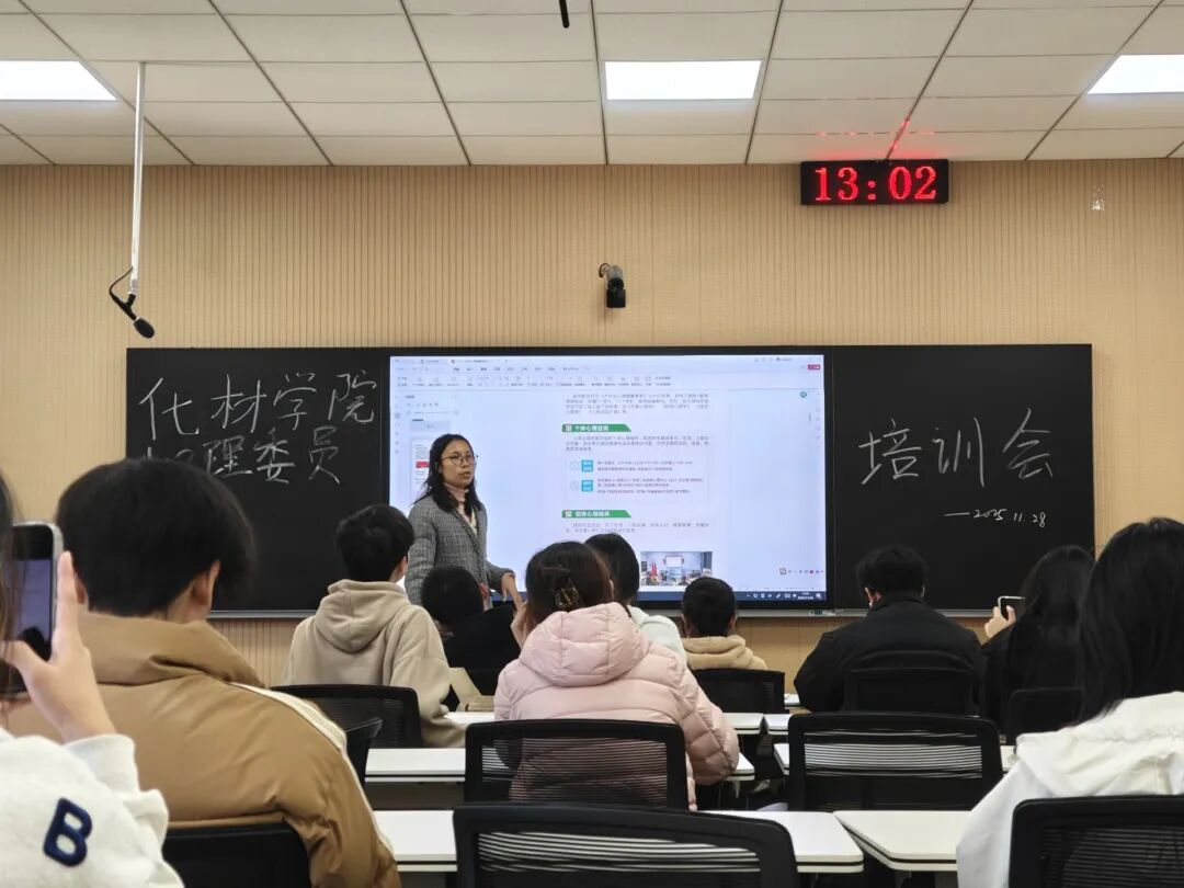 (通讯员 曹翠芳)为完善心理委员工作体系,优化队伍建设,提升学院心理健康服务工作水平,化学与材料工程学院心理部于11月28日中午12:30,在化工楼419教室组织召开“心理委员培训会”主题教育活动。本次活动旨在增强心理委员的专业素养与实践能力,进一步推动学院心理健康教育工作规范化、系统化开展。
