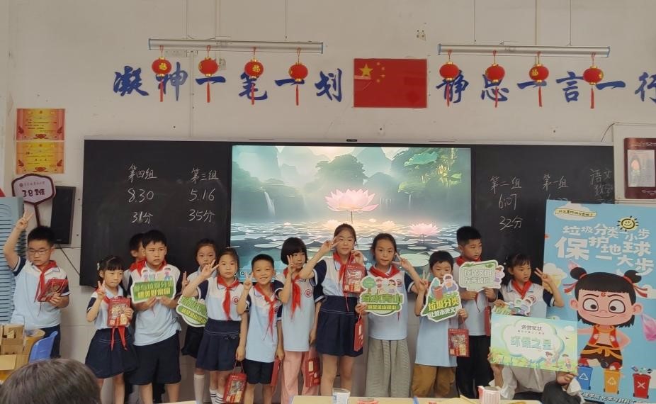 课堂上,二年级的小朋友活泼踊跃,到三年级的孩子的专注认真,学生们通过请孩子们帮助哪吒重塑肉身,这种任务引导式的科普方式,采用趣味问答、动画展示、互动游戏等多种形式讲解垃圾分类知识,孩子们纷纷踊跃参与,课堂气氛热烈非凡。