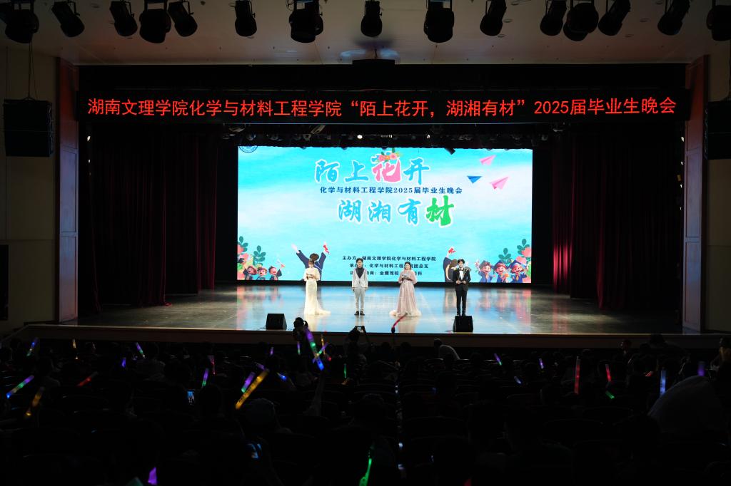 (通讯员 曹翠芳)2025年5月25日晚,湖南文理学院化学与材料工程学院“陌上花开,湖湘有材”2025届毕业生晚会在艺术中心隆重举行。舞台灯光与青春热浪交织,学院领导、师生代表及全体毕业生齐聚一堂,以一场饱含深情的艺术盛宴共叙青春记忆,展望美好未来。