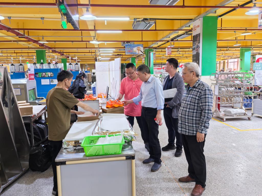 学院团队深入智能裁剪、高分子材料成型等核心车间,实地考察企业作为李宁、迪卡侬核心供应商的智造体系。技术总监重点演示了自动裁断系统,其效率远远超出传统工艺,提升精密注塑工艺与学院功能材料研究方向高度契合。针对车间提出的环保胶黏剂粘度不稳定、冬季鞋材易脆裂等问题,随行博士团队现场展开技术诊断,初步形成联合攻关意向。